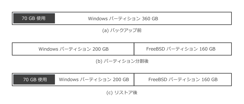 FreeBSD 用のパーティションを確保する