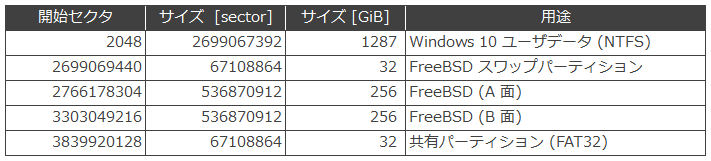 - FreeBSD 用スワップパーティション (A 面、B 面共通)