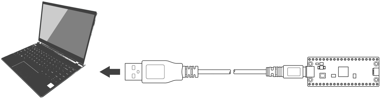 UF2 ファイルを書き込むだけならパソコンとの接続は簡単です。図 1 のように USB ケーブルで Pico とパソコンとをつなぐだけです。
